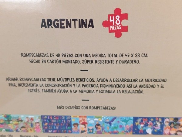 48 piezas para armar un rompecabezas de 47 cm x 33 cm