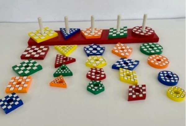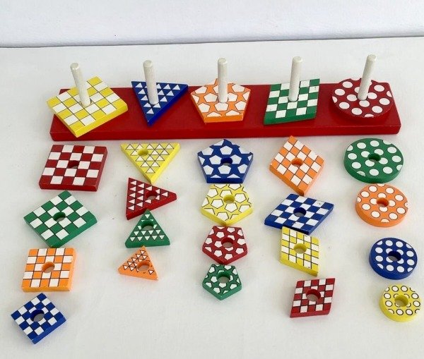 Es un tipo común de juguete educativo diseñado para ayudar a los niños a desarrollar la motricidad fina, el reconocimiento de formas y colores, y habilidades de resolución de problemas