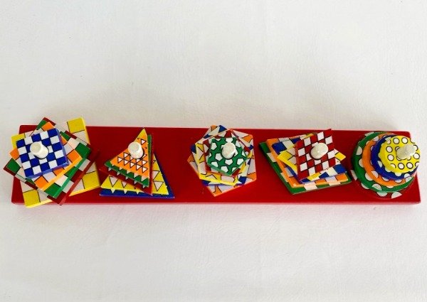 Encastre de Madera con 5 Figuras Geométricas y en diferentes tamaños y colores