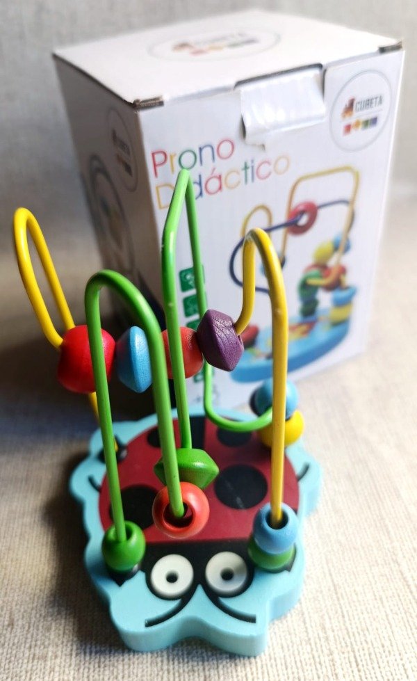 Laberinto de cuentas de madera didáctico, diseñado para estimular la motricidad fina y la coordinación ojo-mano en niños