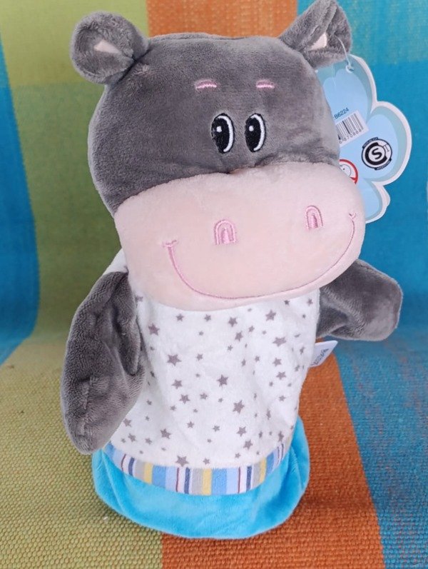 Títere HIPOPÓTAMO en tela peluche muy suave, con Cara BORDADA! ideal para los niños más pequeños