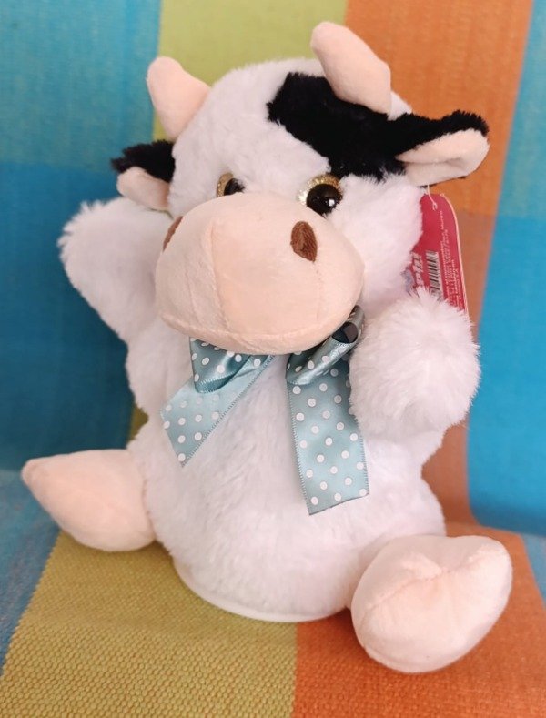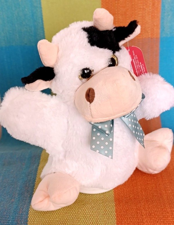 TÍTERE VACA CON MOÑO, OJOS GRANDES en suave peluche