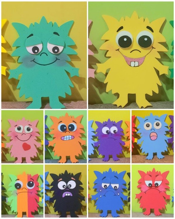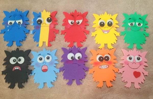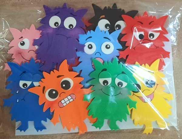 CONTIENE. Pack con 10 Titeres dediles ARTESANALES, representando diferentes emociones y colores.